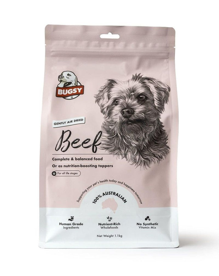 Bugsys Air-Dried Complete Diet for Dogs Beef 1.1kg is a nutritious and wholesome meal made with premium beef. The air-drying process helps to preserve nutrients while ensuring your dog receives a healthy, balanced diet.