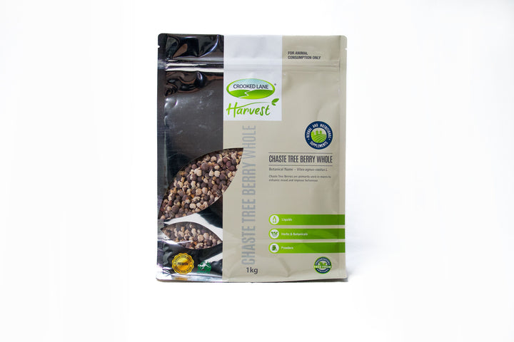 Crooked Lane Chaste Tree Berry 1 kg is a herbal supplement traditionally used to support hormonal balance and reproductive health in mares and dogs.