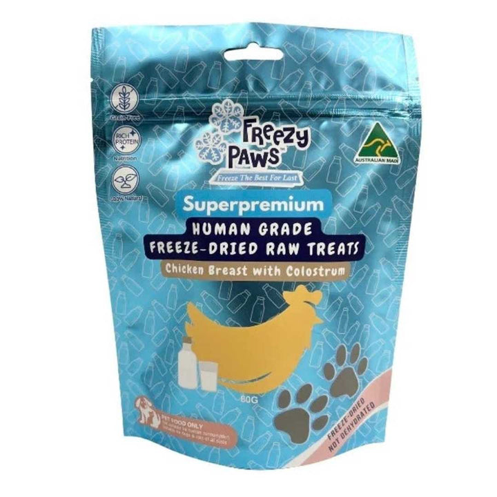 Freezy Paws Chicken Breast with Colostrum Training Treats are made from 100% natural chicken breast, providing a high-protein snack that supports muscle development. Enhanced with colostrum, these treats contribute to immune system support. They are ideal for training, as their small size and palatable flavor make them easy to use as rewards. These treats are free from artificial additives, ensuring a healthy option for your dog.