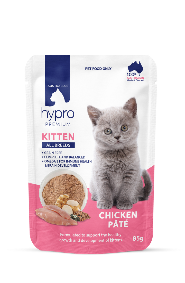 Hypro Premium Grain-Free Kitten Chicken Pate is crafted with real chicken for lean protein, supporting growth and energy. Enriched with DHA and taurine, it promotes brain, vision, and heart health. The soft pate texture is easy for kittens to eat and helps with hydration.