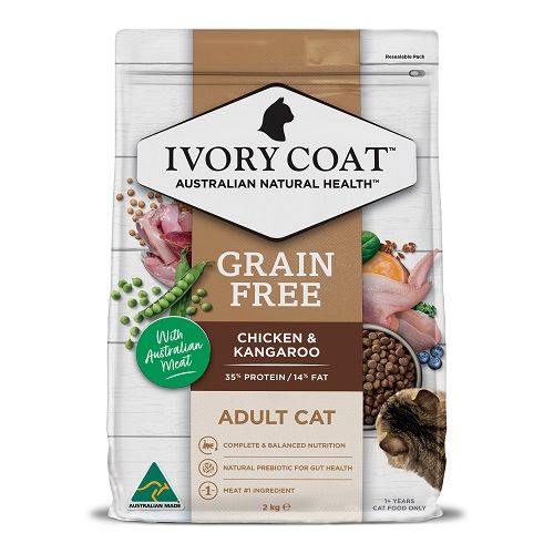 Grain free dry food with Australian chicken and kangaroo for lean, digestible protein. Superfoods and prebiotic fiber support immunity and digestion. Omega oils promote a glossy coat.