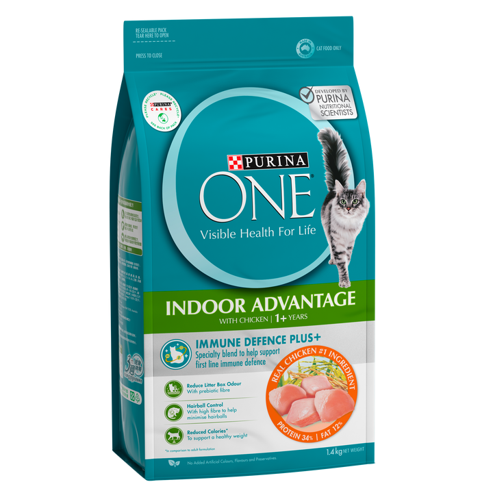 Purina ONE Adult Indoor Chicken is designed for indoor cats, with protein for muscles, fiber for digestion, and fewer calories to help maintain weight. Taurine supports heart and vision, while omega fatty acids promote coat health.