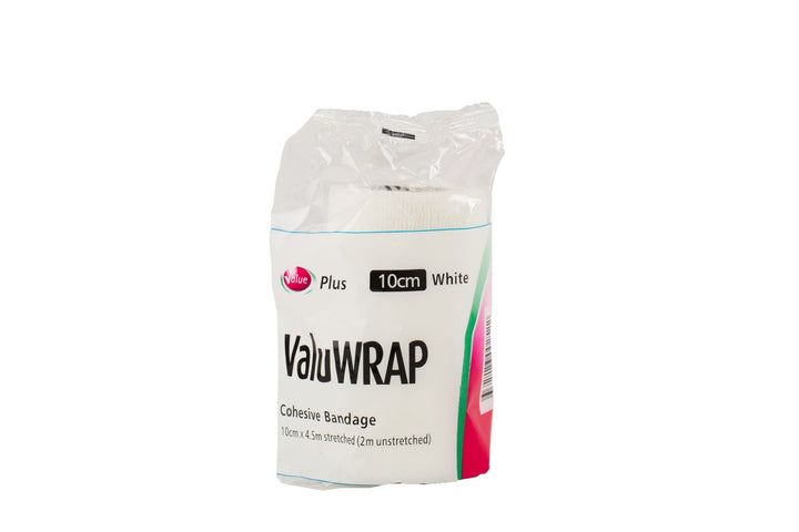 ValuWrap Cohesive Bandage 10cm White is a versatile, self-adhering bandage ideal for securing dressings and wound care. It stretches for a comfortable and secure fit, providing light compression.